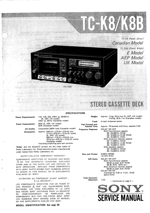 Opis SONY TC-K8B Instrukcja Serwisowa