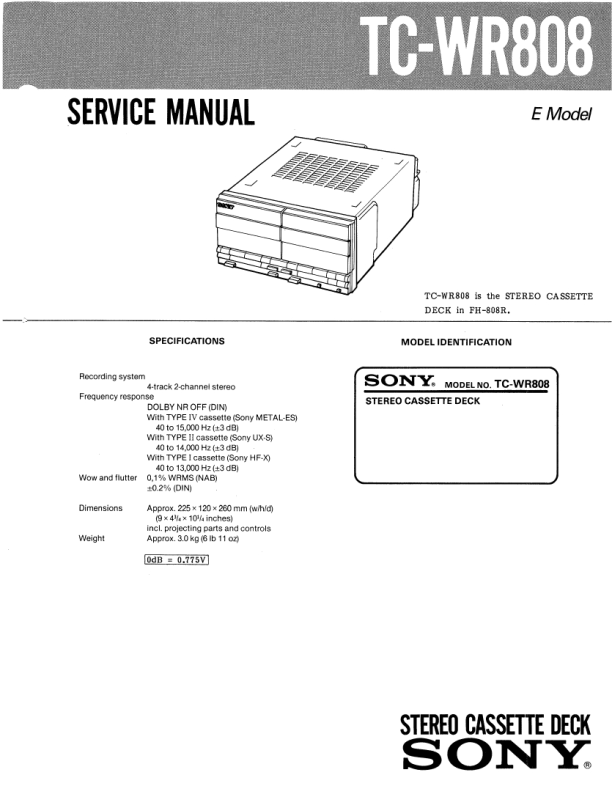 Opis SONY TCWR808 Instrukcja Serwisowa
