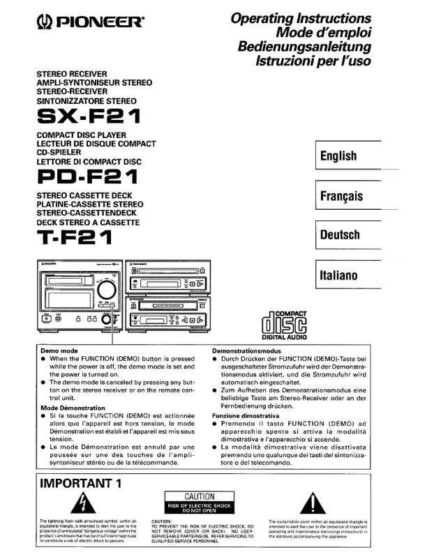 Opis PIONEER T-F21 Instrukcja Obsługi