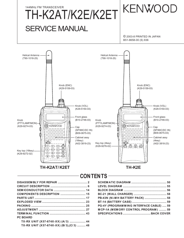9. Release the soldering iron and confirm that the final FET and radiation plate have been soldered. 10. Solder the four pins of the final FET with the soldering iron. 11. Install all the PC boards. 12. Reinstall the shield cover removed in step 3 above in its original position and install two screws. 13. Solder the shield cover to the PC board. (E and E3 types only) 14. Install the chassis on the case assembly and assemble them. 15. Readjust transmission power. Note: Since the FET is sensitive to static electricity, always wear a grounding band. Use a highly insulated ceramic heater solder iron.