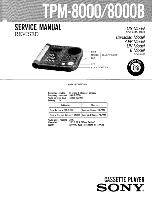 Strona główna >> SONY >> TP8000B Instrukcja Serwisowa