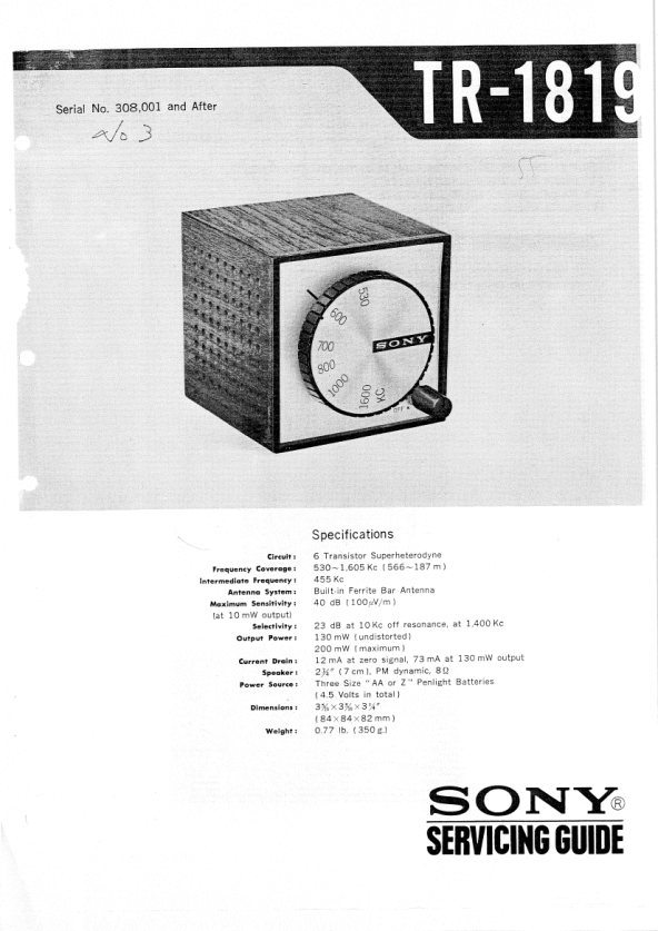 Opis SONY TR-1819 Instrukcja Serwisowa