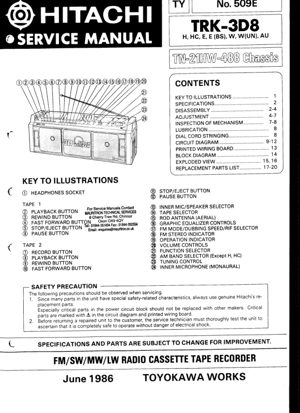 Opis HITACHI TRK3D8 Instrukcja Serwisowa