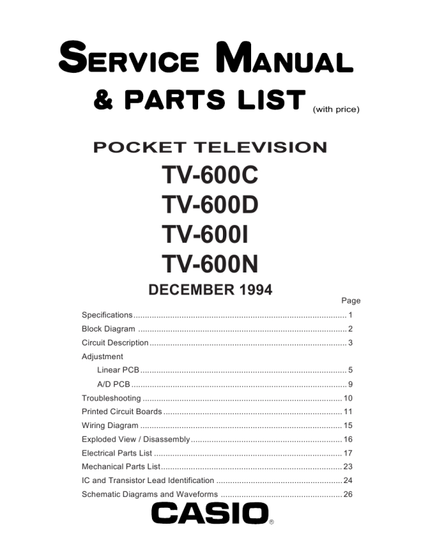 Strona główna >> CASIO >> TV600D Instrukcja Serwisowa