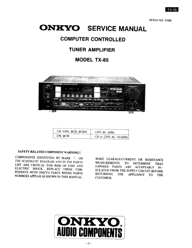 Strona główna >> ONKYO >> TX85 Instrukcja Serwisowa