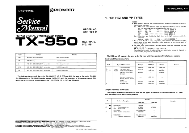 Opis PIONEER TX950 Instrukcja Serwisowa