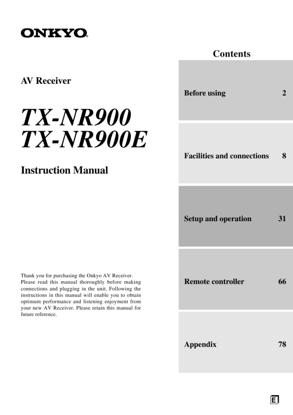 a. Academy Filter Older monaural film mixes relied on high-frequency rolloff in presentation to sound properly balanced, so that excessive hiss from the grain structure of the film would not be heard. The highfrequency loss was typically due to a combination of optical slit loss, electrical filters, loudspeaker response, and screen loss. Some films have been transferred to video without such a high-frequency rolloff, and thus sound overly bright and hissy. The TX-NR900/900E includes this �Academy filter,� which is based on contemporary playback practices for such films over wide-range systems. This can be set to either �On� or �Off.� b. Input Channel This allows you to set which input channel to use for monaural sound. Auto L+R: Select this under normal circumstances. When the input source is center channel, this center channel is used as the monaural sound input channel. Otherwise, the left and right channels are mixed and the mixed signal is used as the monaural sound input channel. Left/Right: You will need to select either left or right when playing a video source that contains bilingual data. In such a case, the left and right channels will contain the audio for different languages. Select the channel with the language you desire.
