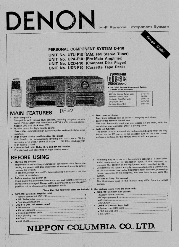 Opis DENON UTU-F10 Instrukcja Obsługi