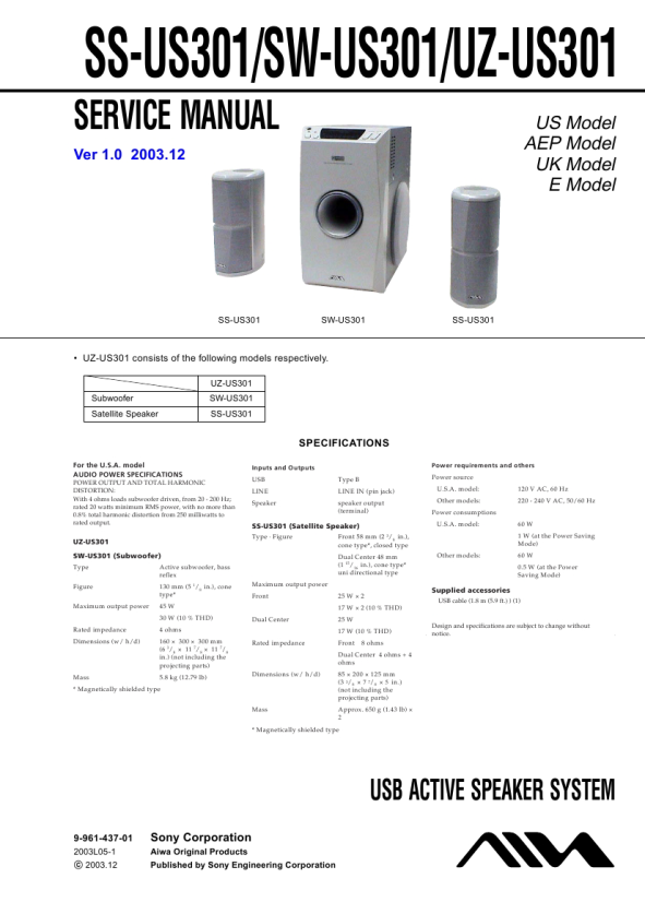 Opis SONY UZ-US301 Instrukcja Serwisowa