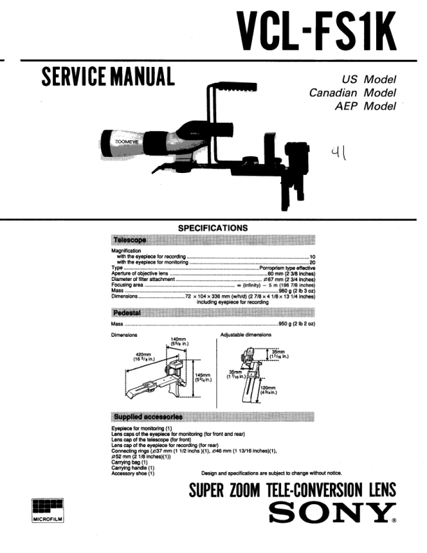 Opis SONY VCL-FS1K Instrukcja Serwisowa