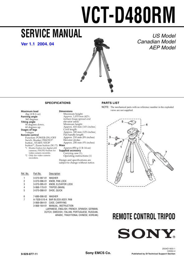 7-688-006-02 WASHER A-7028-510-A BAR BLOCK ASSY, PAN 3-068-084-01 CASE, CARRYING 3-068-164-01 MANUAL, INSTRUCTION (JAPANESE, ENGLISH, FRENCH, SPANISH, GERMAN, DUTCH, SWEDISH, ITALIAN, PORTUGUESE, RUSSIAN, ARABIC, TRADITIONAL CHINESE, KOREAN)