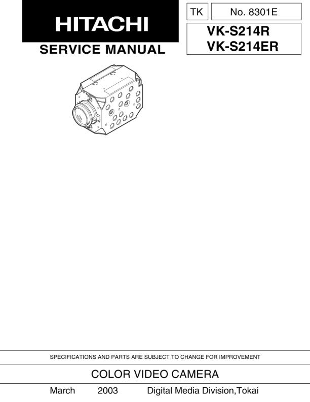 CAN'T ADJUST WHITE BALANCE PLEASE RETRY PRESS ANY KEY D RANGE OVER. ERROR ON da� ADJUSTMENT PRESS ANY KEY. (�: Error code) D RANGE OVER ERROR ON HALL AMP IRIS CANNOT OPEN ANY MORE PRESS ANY KEY 1) 2) 3) 4) 1) 2) The subject is too bright or too dark. Check the light box. Move the camera closer to or away from the light box. Supply power again and readjust. Check the values in the hall amp circuit. Defective soldering, damage to pattern, etc. in the above circuit.