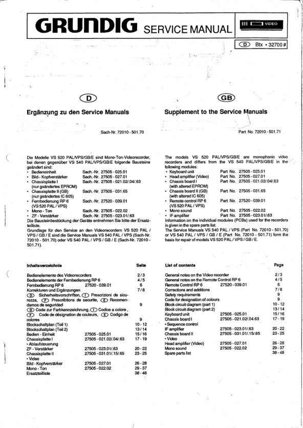 Strona główna >> GRUNDIG >> VS530 Instrukcja Serwisowa
