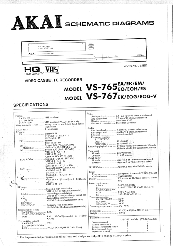 Strona główna >> AKAI >> VS765 Instrukcja Serwisowa