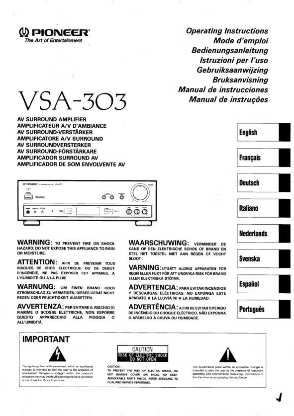 Opis PIONEER VSA-303 Instrukcja Obsługi