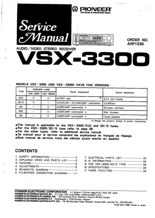 Strona główna >> PIONEER >> VSX3300 Instrukcja Serwisowa