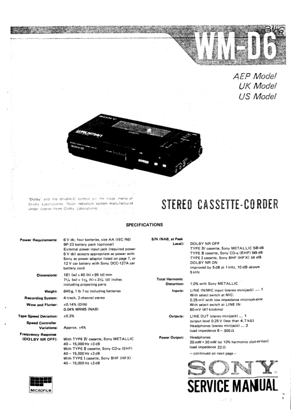 SONY WM-D6