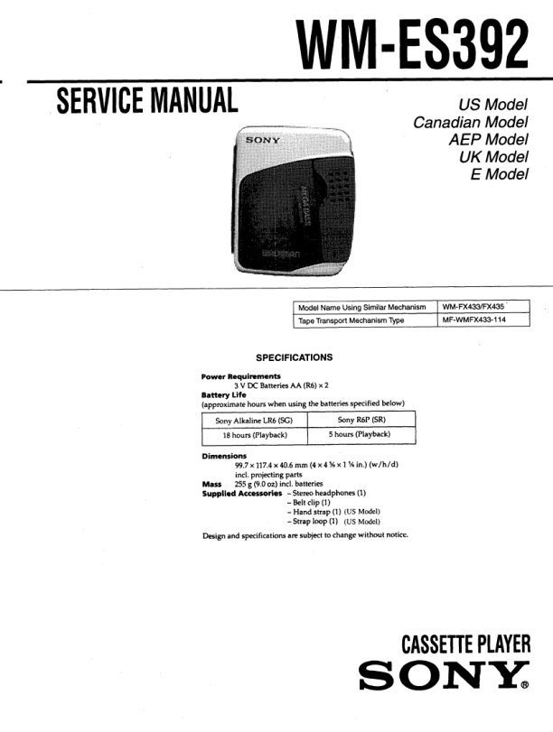 Opis SONY WM-ES392 Instrukcja Serwisowa