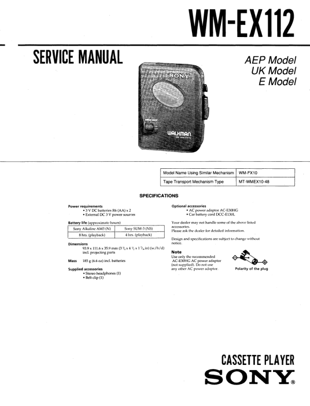Opis SONY WM-EX112 Instrukcja Serwisowa