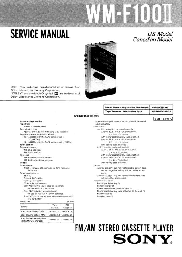 Strona główna >> SONY >> WMF100II Instrukcja Serwisowa