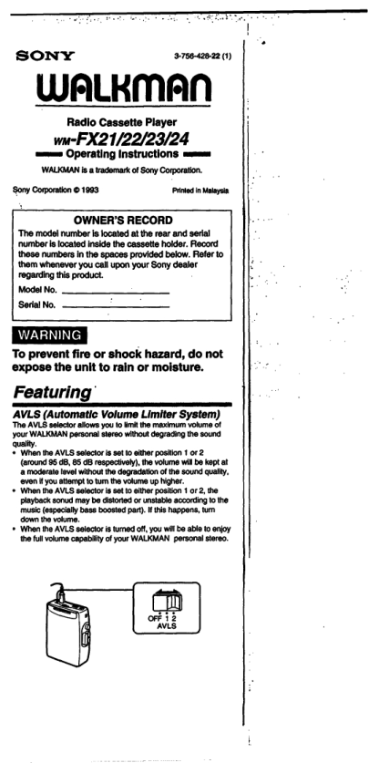 Opis SONY WM-FX22 Instrukcja Obsługi
