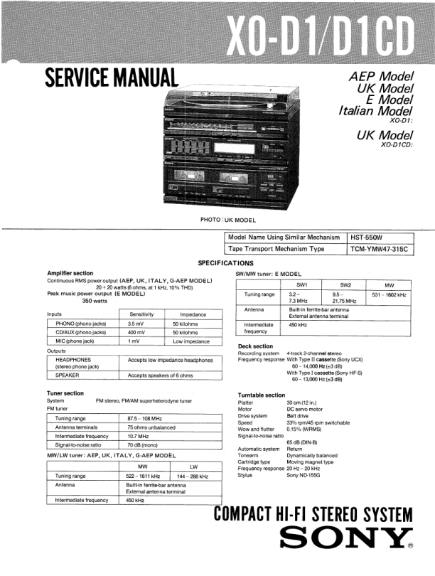 Strona główna >> SONY >> X0D1CD Instrukcja Serwisowa