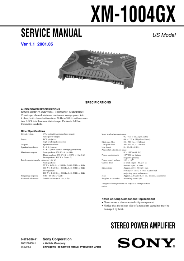 Opis SONY XM1004GX Instrukcja Serwisowa