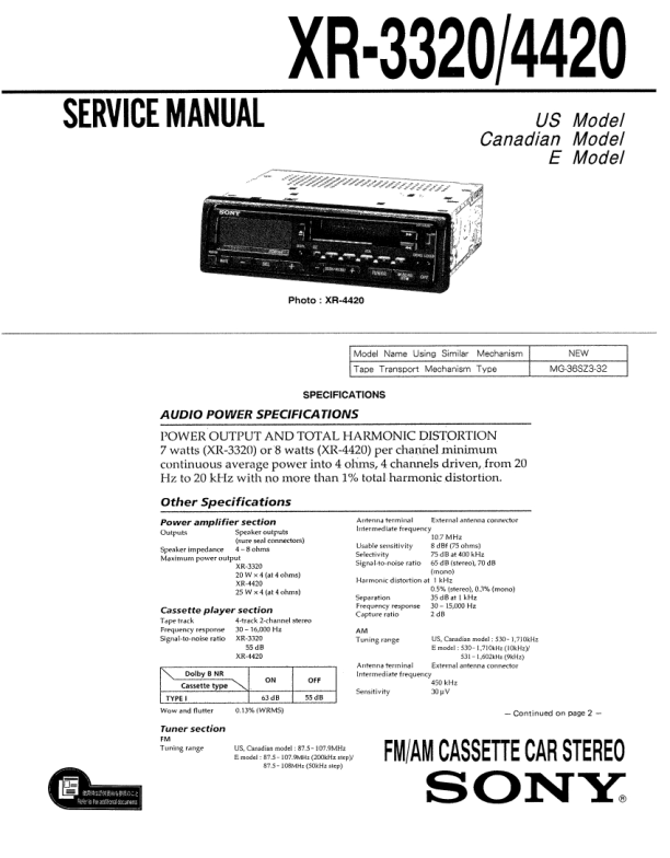 Opis SONY XR-3320 Instrukcja Serwisowa