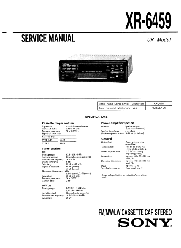 Opis SONY XR-6459 Instrukcja Serwisowa