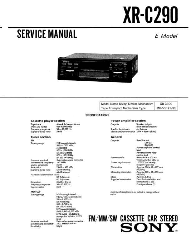 Strona główna >> SONY >> XRC290 Instrukcja Serwisowa