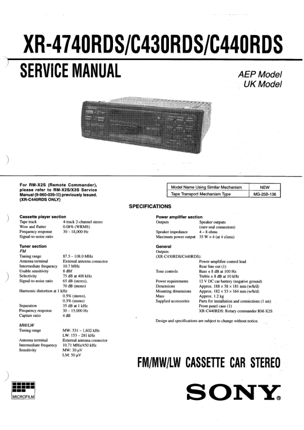 SONY XRC4740RDS