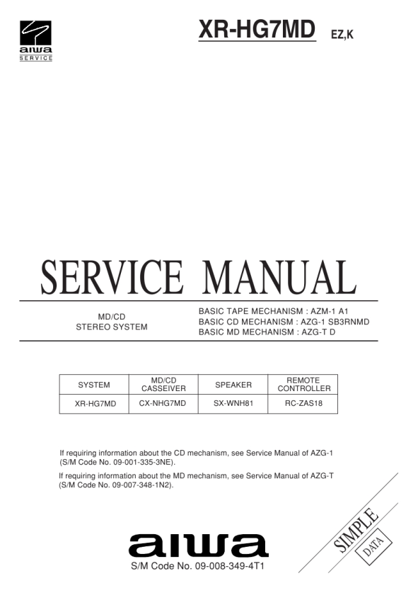 BASIC TAPE MECHANISM : AZM-1 A1 BASIC CD MECHANISM : AZG-1 SB3RNMD BASIC MD MECHANISM : AZG-T D