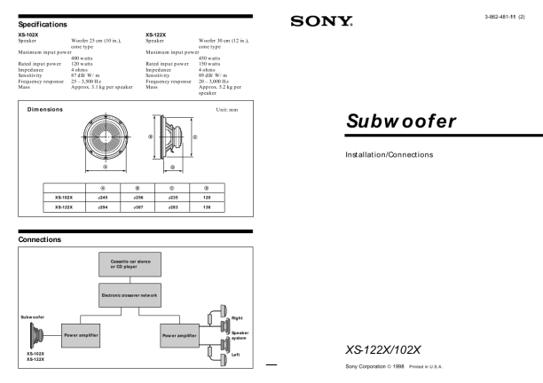 Opis SONY XS-122X Instrukcja Obsługi