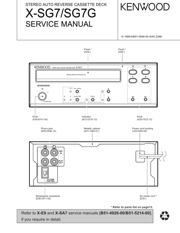 Order Item Input setting Output setting Deck setting Adjustment points Adjustment method Fig. Unless otherwise specified, set the respective switches as follow : TAPE : NORMAL DOLBY : OFF INPUT : REC IN I. Cassette mechanism section (Recording/play head adjustment)