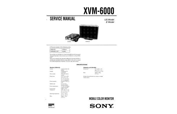 Opis SONY XVM6000 Instrukcja Serwisowa