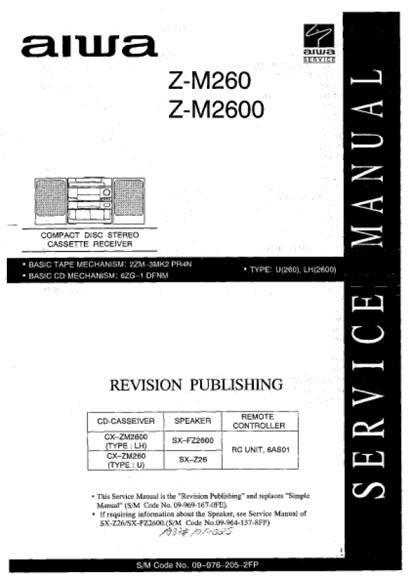 Opis AIWA ZM2600 Instrukcja Serwisowa
