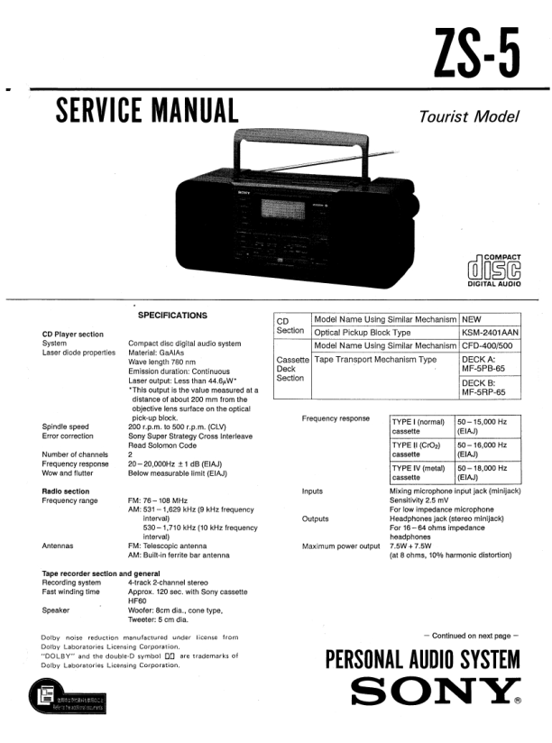 Strona główna >> SONY >> ZS5 Instrukcja Serwisowa