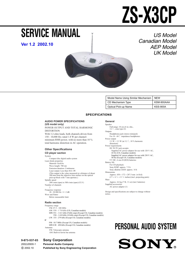 for AM (US, Canadian models) MW/LW (Except US, Canadian models)